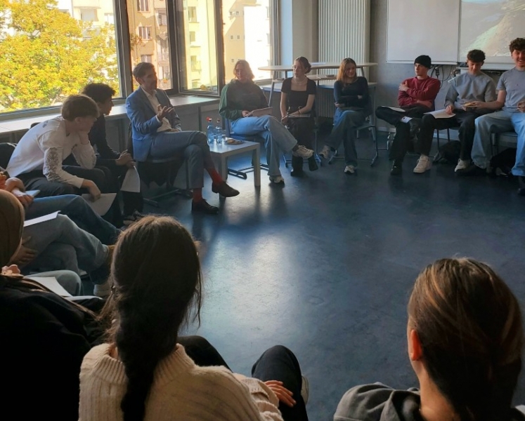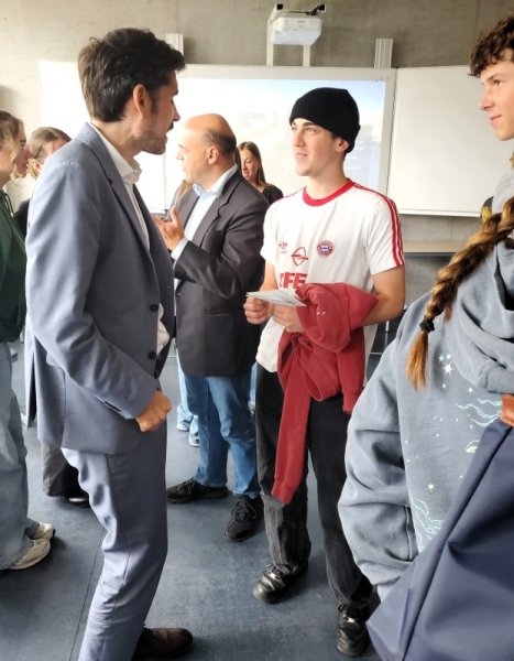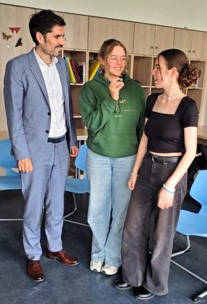 Am Freitag, den 12.9.2025 empfingen die Sozialkunde-Leistungskurse der 11. Jahrgangsstufe (MIC, MLL) den rheinlandpfälzischen Bildungsminister Sven Teuber zu einer Diskussionsrunde. Nach einer Eröffnungsrunde zum Thema Hausaufgabenüberprüfung, musste sich der Minister einer „schnellen Fragerunde“ stellen, bei der es beispielsweise um unauflösbare Zielkonflikte ging, wie „Merkel oder Merz, Groko oder Ampel, Trier oder Mainz, Lehrer oder Politiker“. In der offenen Runde kamen die Schülerinnen und Schüler zu den Themen wie demokratische Partizipation von Schülerinnen und Schüler, Schutz vor demokratiefeindlichen Akteuren in der Schule oder den Perspektivwechsel vom Lehrer zum Abgeordneten im Landtag und jetzt zum Staatsminister ins Gespräch. Zum Abschluss stellte sich der Minister diversen Selfies und TikTok-Trends, inspizierte den Kreativlernbreich, Bibliothek und schaute auch kurz in den Unterricht hinein. Der insbesondere für das Fach Sozialkunde wichtige Austausch mit politischen Akteuren, wie es das Duo um Lani D. und Kira S. in der Abmoderation schlussfolgerte, konnte so gerade mit Blick auf bildungspolitische Themen erfolgreich eingelöst werden.