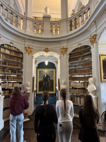 Am Freitag sind wir früh am Hostel losgefahren, um die KZ-Gedenkstätte Buchenwald zu besichtigen. Obwohl wir vor Ort keine Führung gemacht haben, war der Besuch durch einen einleitenden Film und einen abschließenden Museumsbesuch informativ und eindrucksvoll. Anschließend haben wir den Rokokosaal der Anna-Amalia-Bibliothek besichtigt. Das ist eine Forschungsbibliothek für Literatur- und Kulturgeschichte. Als Abendprogramm stand schließlich ein Theaterbesuch an. Wir haben eine in Teilen modernisierte Version von Goethes „Faust" angesehen.