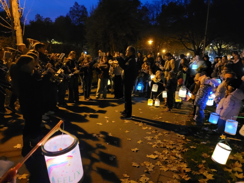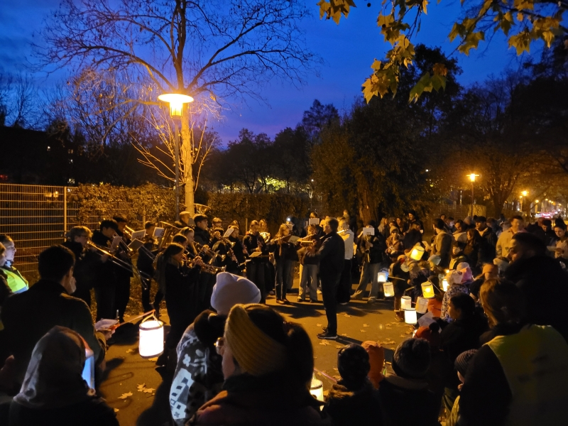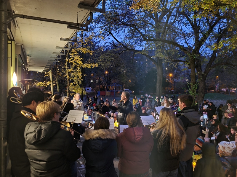 Auch in diesem Jahr begleiteten unsere Musikerinnen und Musiker die St. Martinsumzüge dreier Kitas in Mainz. Die Kindergartenkinder freuten sich riesig, dass die großen Schülerinnen und Schüler der Bläserklassen 7a und 7b sowie der „Fabulous League of Gentlemen“ extra zu ihnen kamen und für sie zu musizieren. Daher wurden die Martinslieder auch ganz begeistert mitgesungen und die Laternen ordentlich geschwenkt.