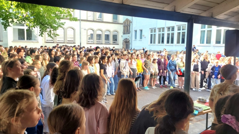 Was verbindet Vielfalt und Gemeinschaft besser als Musik? Zum Auftakt des Tages sang Hicham aus der 7c mit einer wirklich starken Solo-Performance unsere eigene FLG-Version von "We Will Rock You“. Sein mitreißender Auftritt steckte alle an - beim Refrain waren alle sofort dabei: Aus "We will, we will rock you" wurde ein lautes, gemeinsames „Wir, wir feiern Vielfalt!