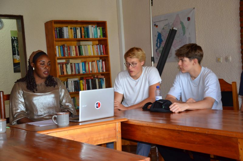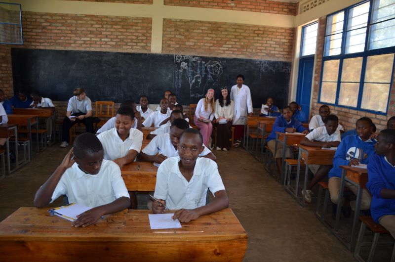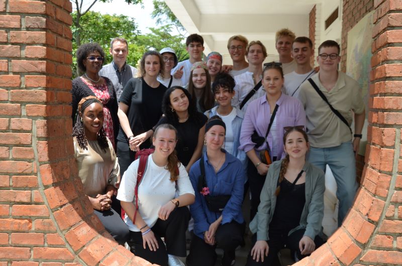 Fünfzehn Schülerinnen und Schüler der Jahrgangsstufe 12 brachen in der zweiten Ferienwoche mit drei Lehrkräfte nach Ruanda auf, um unsere Partnerschule zu besuchen und das Land und die dort lebenden Menschen auf vielfältige Weise kennenzulernen. Nach einem Aufenthalt in Kigali, bei dem wir unter anderem das Genozid-Memorial besuchten, fuhren wir weiter zu unserer Partnerschule nach Rusatira, wo wir in den folgenden Tagen viele Begegnungen mit den Schülern und Schülerinnen und den Unterrichtenden hatten z.B. bei Aktionen wie das gemeinsame Pflanzen von Avocadobäumen auf dem Schulgelände im Rahmen von Umaganda, einem ruandaweiten Aktionstag an jedem letzten Samstag im Monat, oder einem Fußballspiel. Auch der Besuch des Unterrichts in den dank der Spenden neu überdachten Räumen mit helleren Fenstern war interessant und zeigte einige Parallelen mit unserem, nicht nur im Unterrichtsstoff.