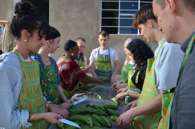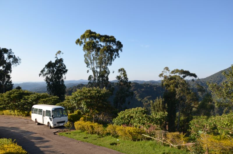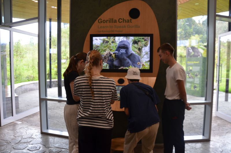 Nach den sehr intensiven Tagen an der Partnerschule ging die Fahrt weiter in den Westen des Landes durch den Regenwald, zum Kivu-See bis zum Vulkangebiet im Norden. Während der Fahrt machten wir immer wieder Halt bei Initiativen, Corporationen und Start-Ups. So sahen wir die Arbeit einer Kunstschule, besuchten das Nyamirambo Women`s Center, das u.a. alleinerziehende Mütter unterstützt, und eine Produktionsstätte von E-Motor-Bikes. An zwei Stationen konnten wir die Möglichkeiten ruandischer Landwirtschaft kennenlernen und wir trafen eine deutsche Ärztin, die seit dreißig Jahren in einem Health Center in der Nähe von Rusatira arbeitet. Sie zeigte uns unter anderem ein sehr einfaches Haus, das mithilfe der Gelder eines Spendenlaufs erbaut wurde und nun eine große Familie beherbergt.