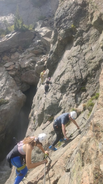 Wenn es um neue Erfahrungen geht, ist der Klettersteig definitiv auch ganz oben mit dabei. Man würde es vielleicht nicht vermuten, aber so ein Klettersteig ist doch schon etwas ganz anderes als Felsenklettern und 50 Meter über einem Wasserfall zu hängen kann schon ganz schön auf die Psyche gehen. Aus diesem Grund ist es noch cooler, dass wirklich jeder ihn gemeistert hat.