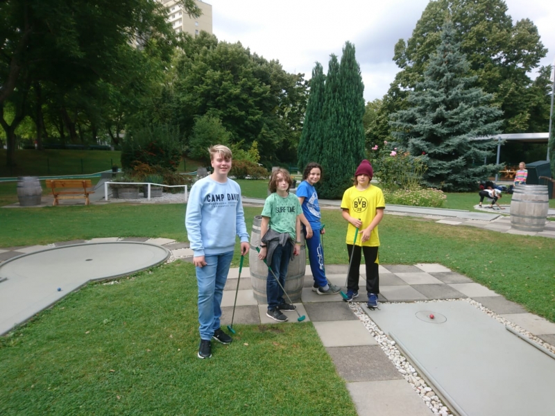 Die 6. und 7. Klassen fingen den Start ins neue Schuljahr ganz entspannt mit einem Wandertag an. Zum Glück spielte auch das Wetter mit, sodass fröhlich geklettert, gegolft, gewandert und gespielt werden konnte.