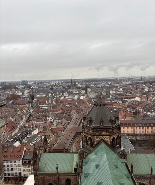 Bevor es zur eigenen Erkundung der Stadt ging, sind wir auf den Turm des Straßburger Münsters hinaufgestiegen und hatten einen Ausblick über die ganze Stadt. Die restliche Zeit verbrachten wir in Kleingruppen und schauten uns unter anderem die Einkaufspassage L’Aubette an. Es war ein toller Ausflug und vielen Dank an unsere Sozialkundelehrer.