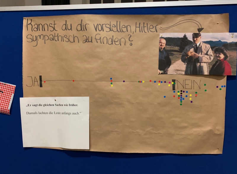 Schülerinnen und Schüler des Jahrgangs 12 haben am vergangenen Donnerstag einen Filmabend veranstaltet, der sich damit beschäftigt hat, wie man mit aufkommendem Rechtsextremismus umgehen kann oder nicht. Ob „er wieder da ist“, wie es der Filmtitel unterstellt oder sogar „immer in uns drin“, wie es ein Zitat des Films andeutet, war dabei eine der Fragen, die die etwa fünfzig Anwesenden beschäftigte. So blieben neben den anfangs lustigen Momenten während des Films auch viele nachdenkliche Gespräche prägend für den Abend.