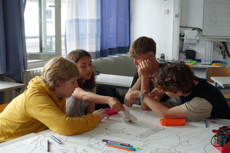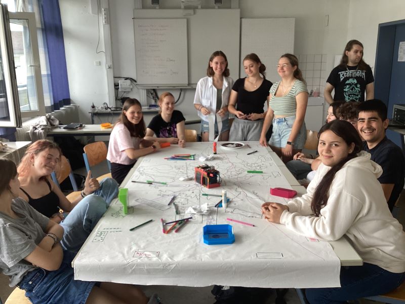 Am Ende des Schuljahres wurde in zwei neunten Klassen noch einmal das Thema Europa aufgegriffen. In dem Projekt „Schulbesuch Europa“, das sich an das Rimini Protokoll anlehnt, konnten die Schüler und Schülerinnen unter anderem das Wachsen der Europäischen Gemeinschaft auf einer Europakarte nachvollziehen und erfahren, wie Entscheidungsfindungen vor sich gehen und welche Rolle Macht, Zusammenarbeit und taktisches Geschick dabei spielen. Dieses Angebot des Kultursommers konnte dank der finanziellen Unterstützung des Fördervereins wahrgenommen werden.